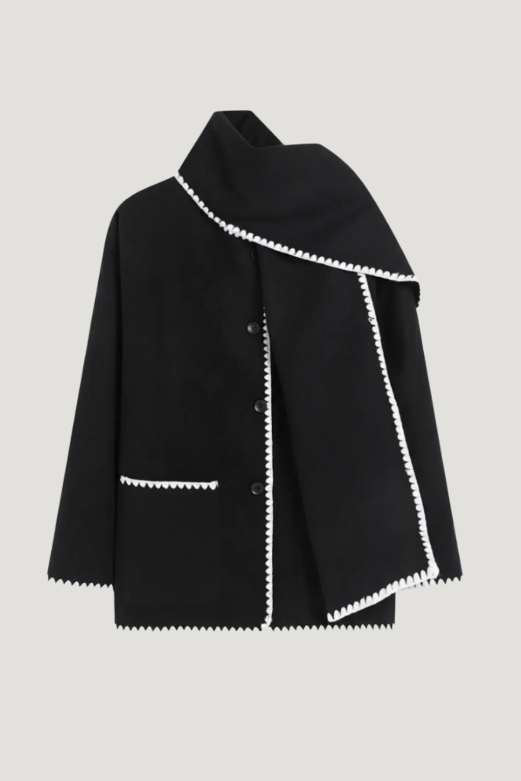 Nellie | Black Wool Cape Coat with Contrast Trim