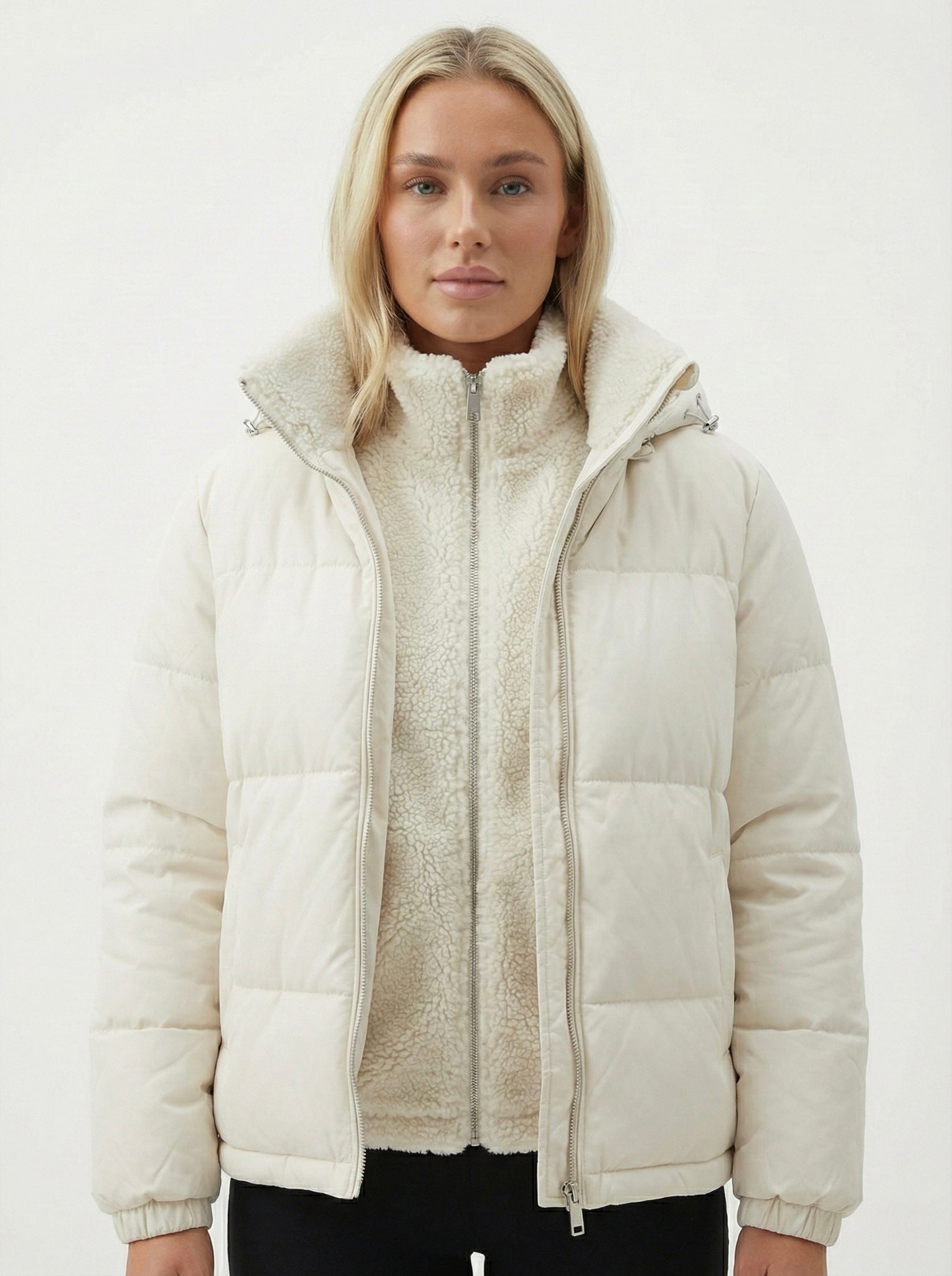 Joane | Kurze Steppjacke mit Kapuze und Plüschfutter