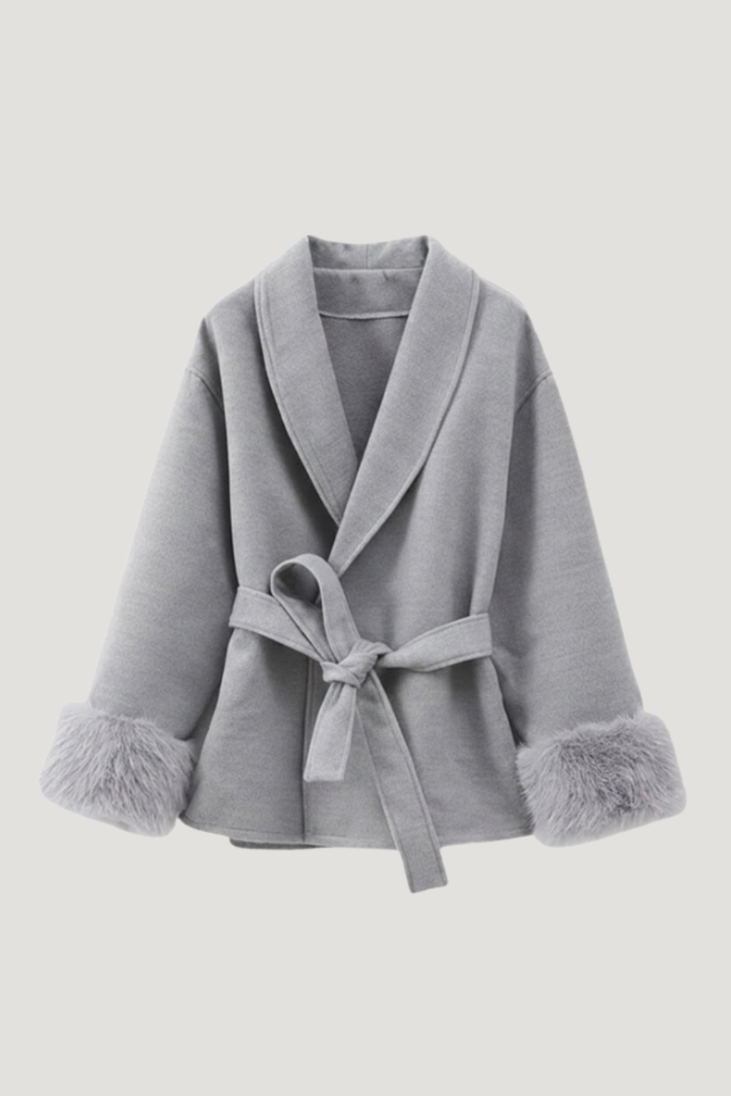 Celine | Wool Blend Belted Coat with Faux Fur Cuffs
