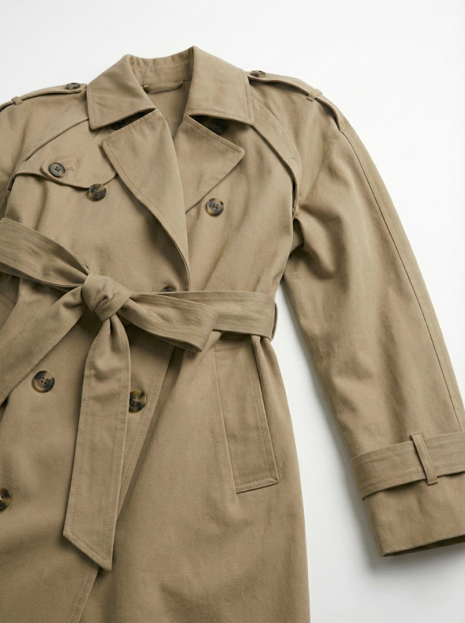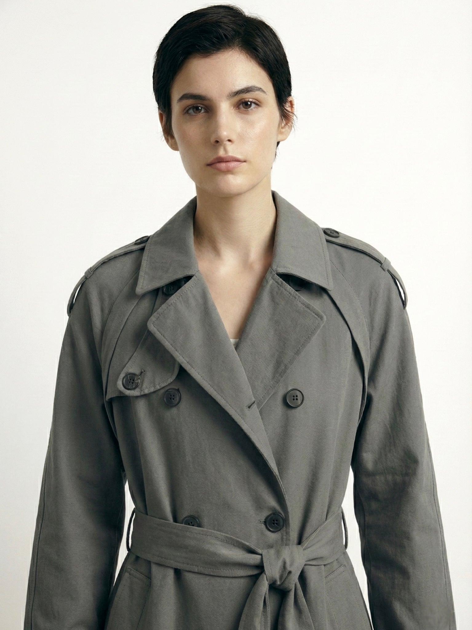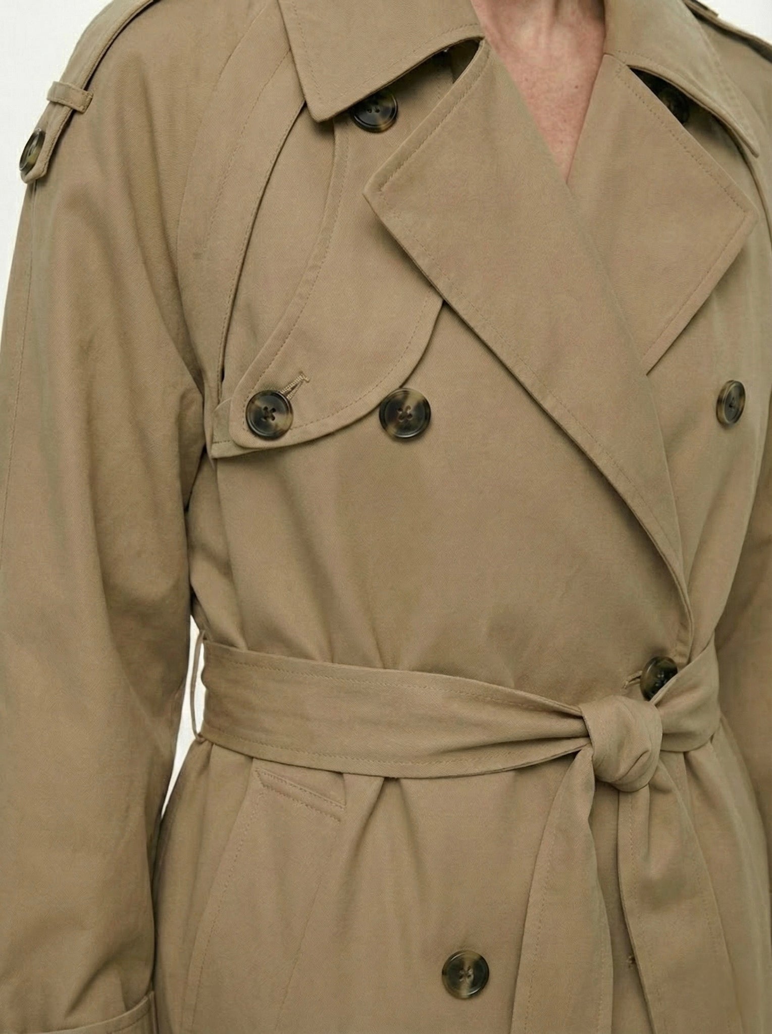 Le trench-coat croisé Myla est un incontournable intemporel du vestiaire, alliant coupe classique et sophistication moderne. Confectionné dans un tissu structuré en mélange de coton, il présente une fermeture croisée, des épaulettes, une ceinture à la taille et des pattes de serrage aux poignets pour une silhouette raffinée.