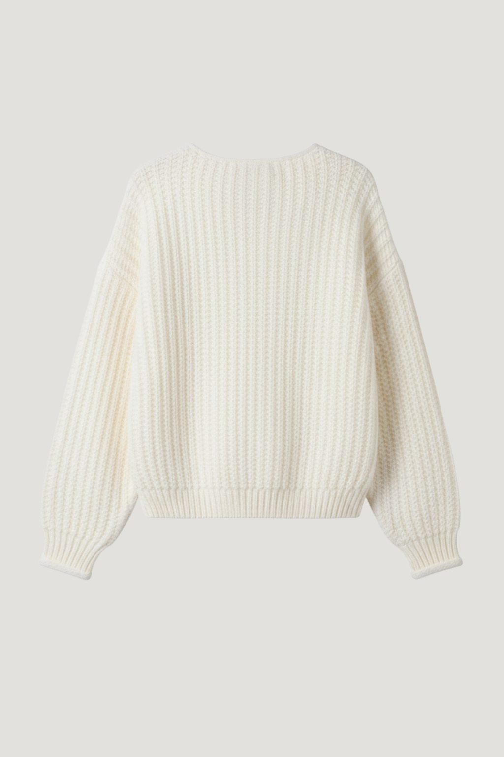 Rae | Gilet en grosse maille crème avec boutons dorés