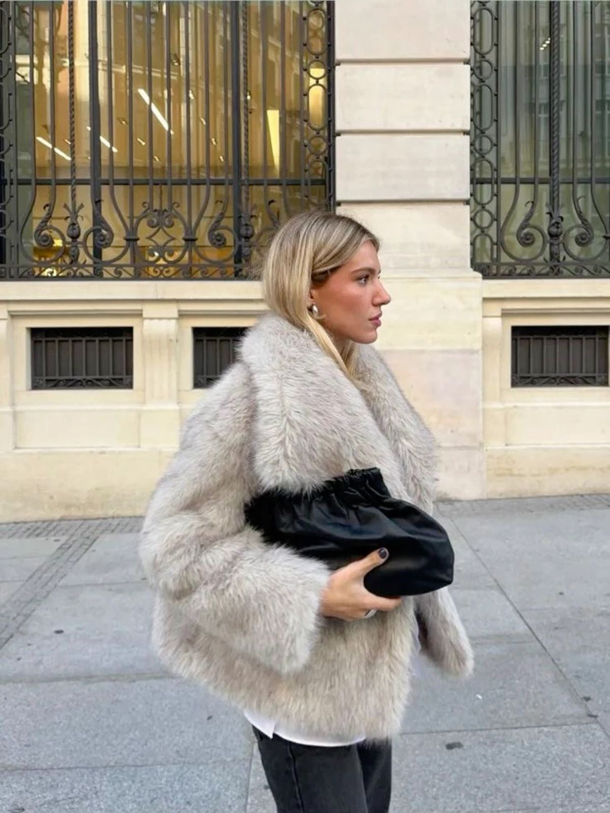 Featuring a wide lapel collar, concealed front closure and relaxed fit, this coat offers both comfort and glamour. Perfect for autumn and winter, it layers effortlessly over jeans, dresses or evening looks — bringing Parisian-inspired elegance to your everyday wardrobe.