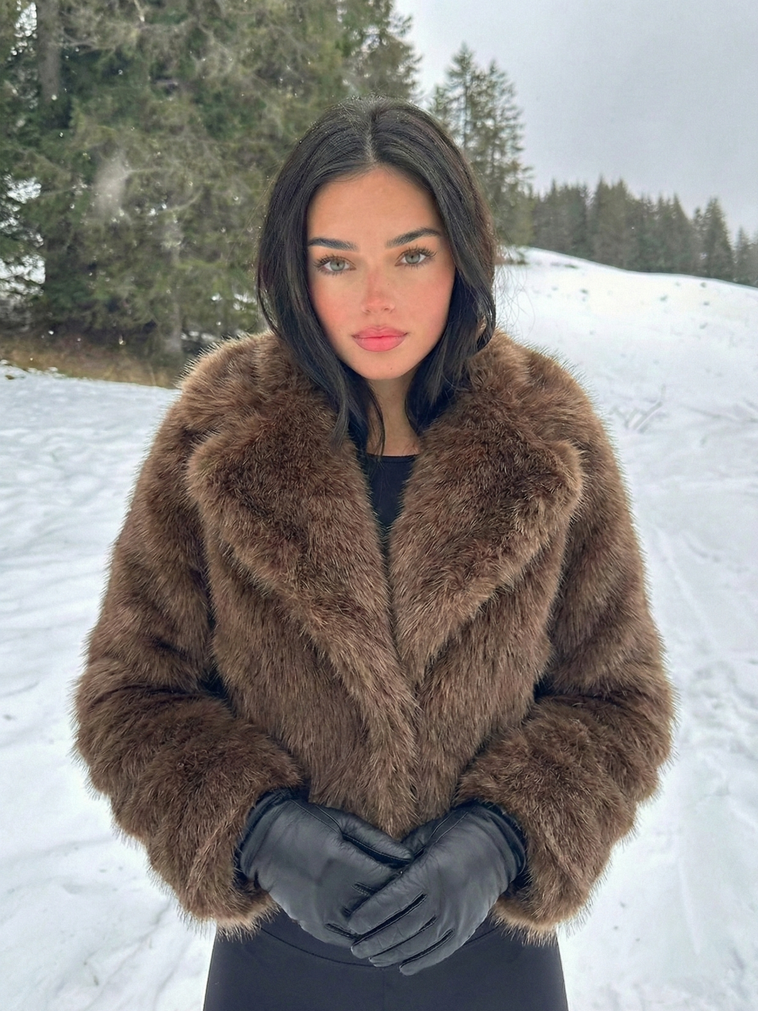 The Ayla Cropped Faux Fur Jacket with Wide Collar features a soft, plush faux fur finish with a cropped silhouette and a wide collar design. Created to elevate winter looks, it brings warmth, texture, and a clean, fashion-forward presence ideal for colder days.