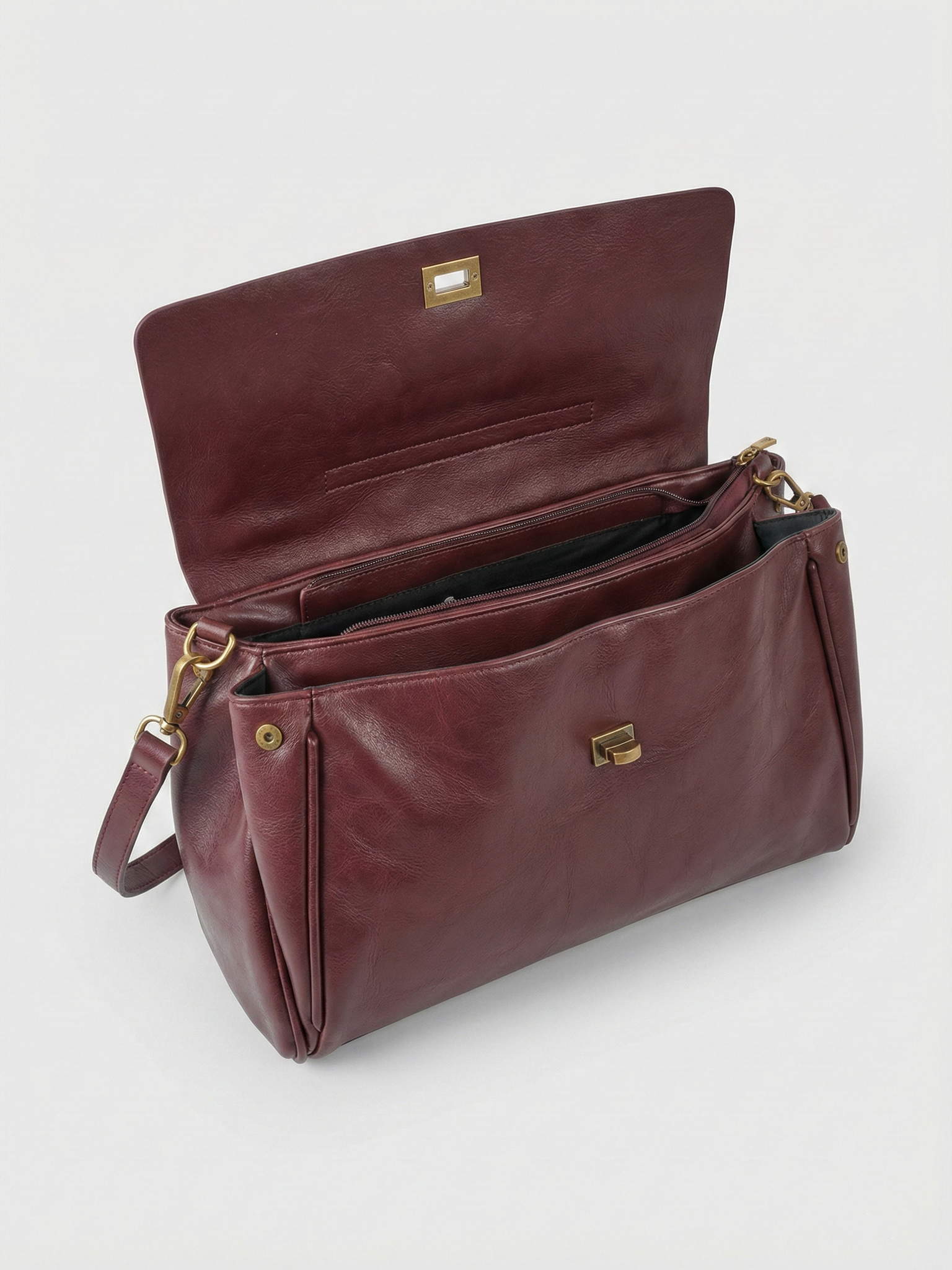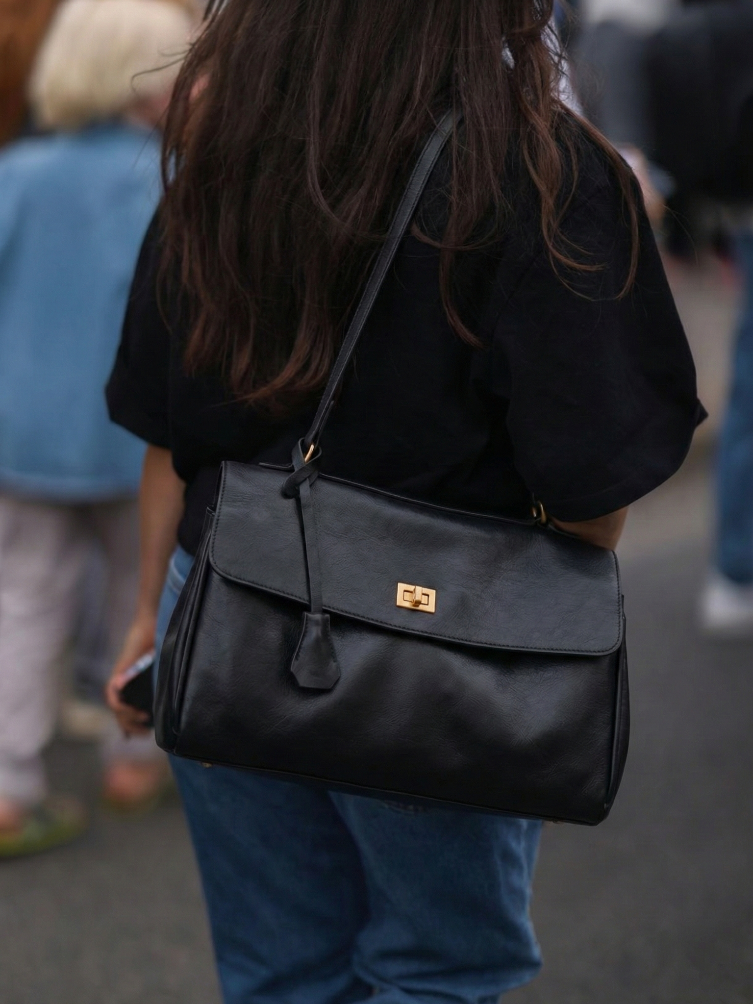 The Cecil Structured Shoulder Bag features a classic structured silhouette with a refined flap closure and polished hardware details. Designed to balance everyday practicality with elevated style, it offers a spacious interior and a clean, timeless shape that works seamlessly from day to night—perfect for city wear, work looks, or refined casual styling.