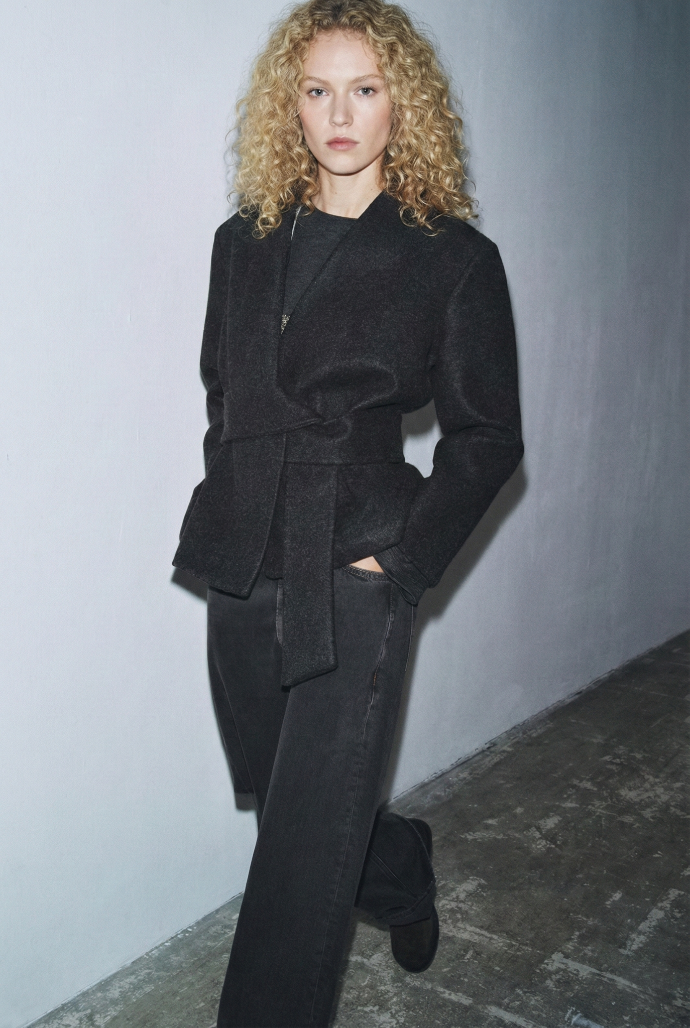 Its slightly dropped shoulders and straight sleeves offer comfort and balance to the silhouette, making it versatile for both day and night looks. The clean neckline and simple design allow effortless pairing with jeans, tailored trousers, or skirts — ideal for transitional dressing.