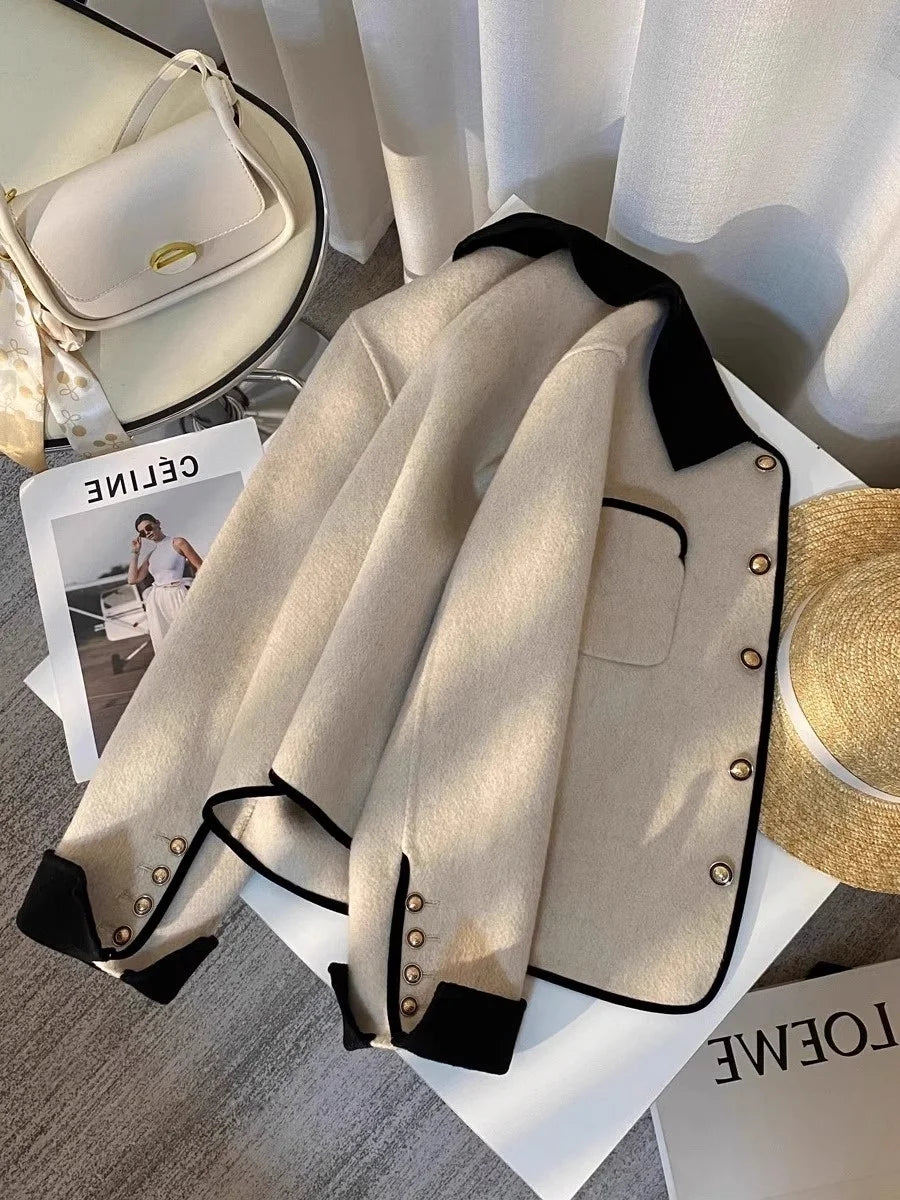 The Karinna Contrast Trim Collar Jacket brings a refined statement to everyday dressing with its clean structure and bold detailing. Designed with a sharp contrast collar and matching trim, this piece blends classic tailoring with a modern finish.